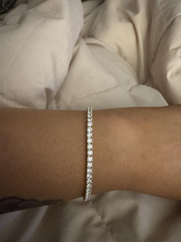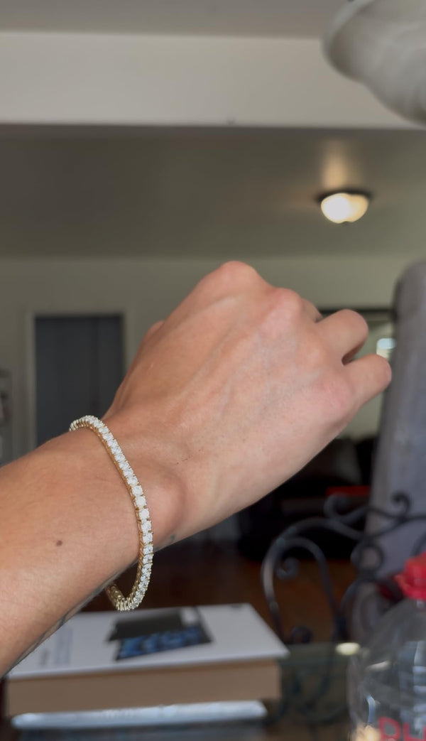 Our tennis bracelet is made with high-quality materials and plated with premium silver or gold for a long-lasting shine. It’s designed to resist tarnishing and keep its sparkle over time.